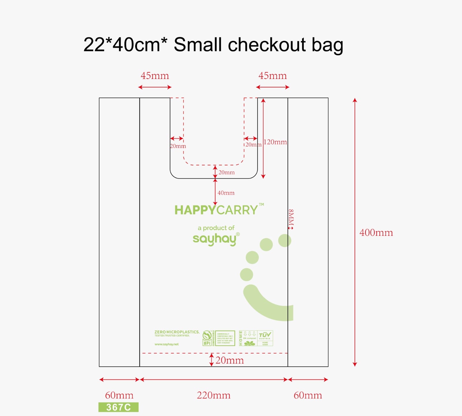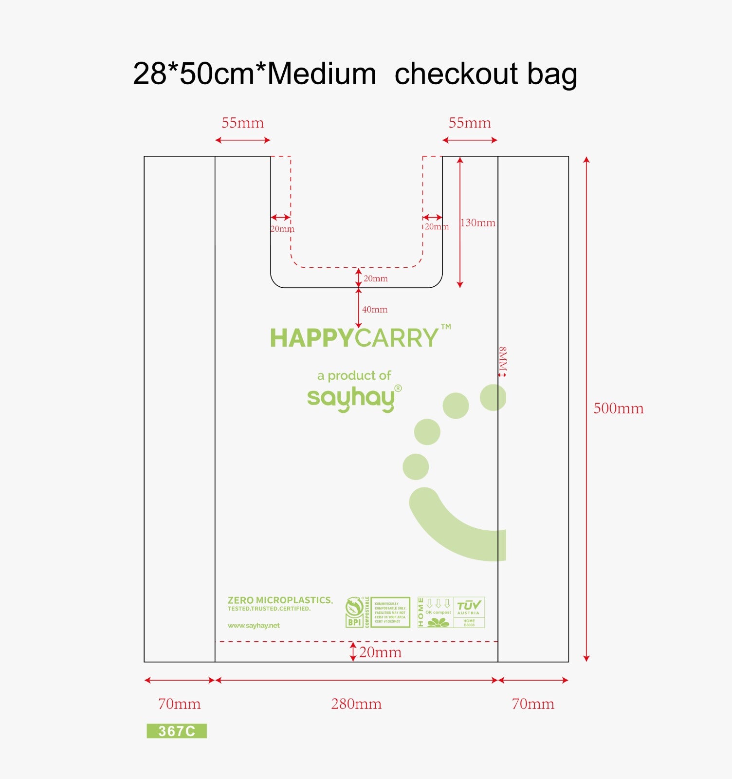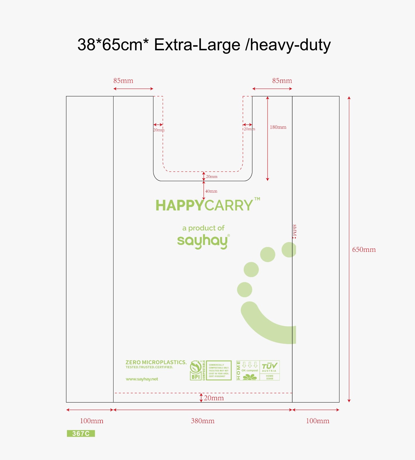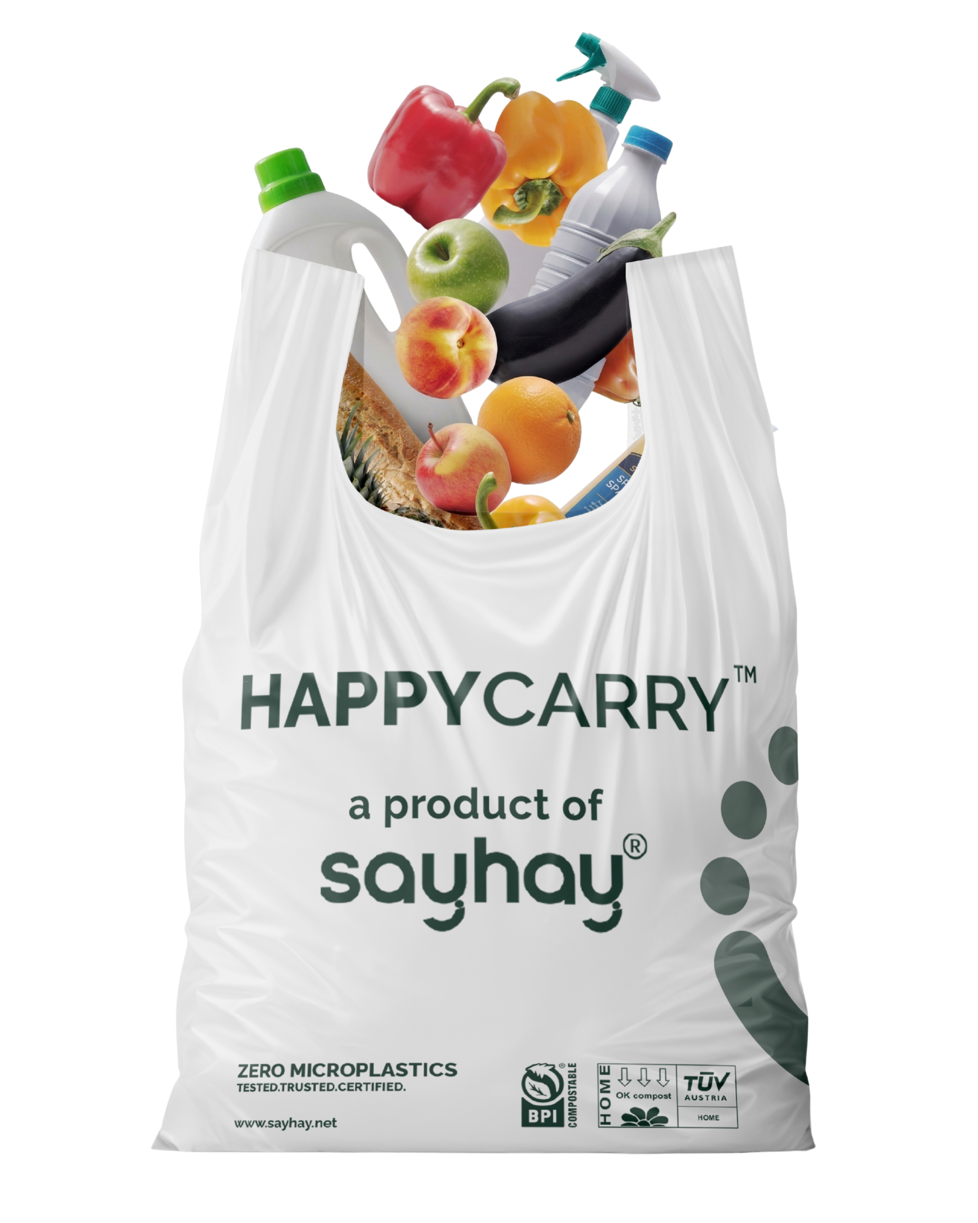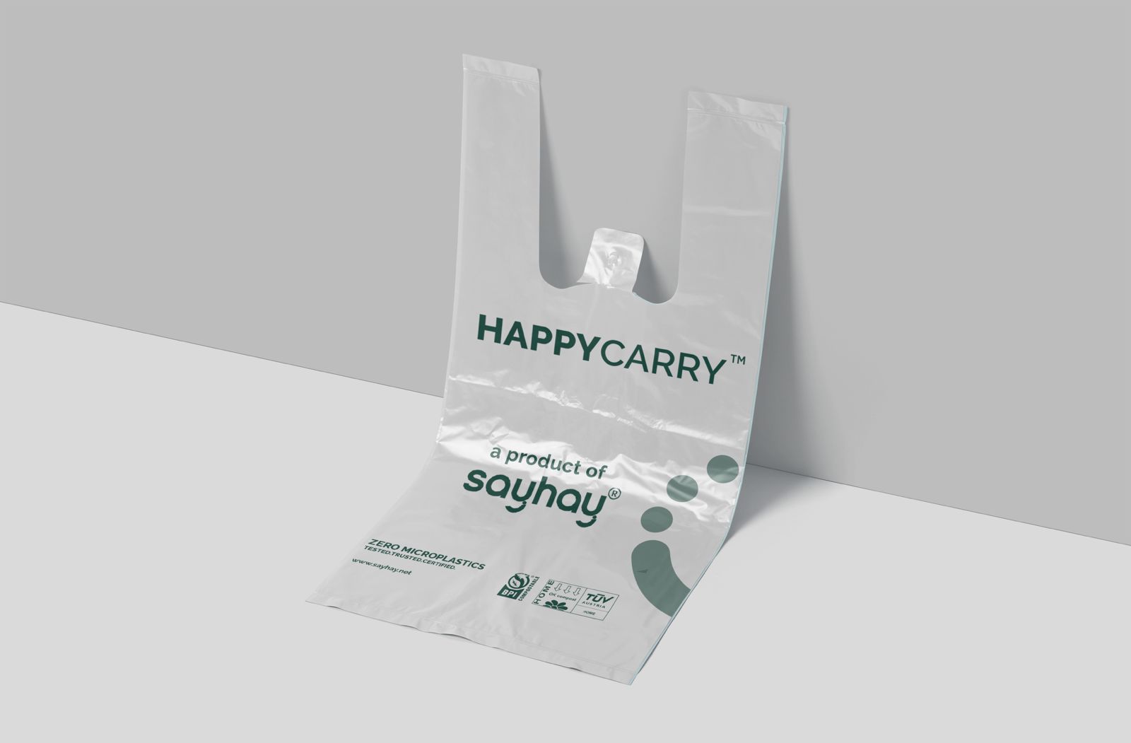 HAPPYCARRY™ replaces single use plastic shopping bags with a durable, plant based alternative that is strong, functional, and home compostable. Ideal for retail, grocery, and takeaway, it is designed to be used confidently and disposed of responsibly.