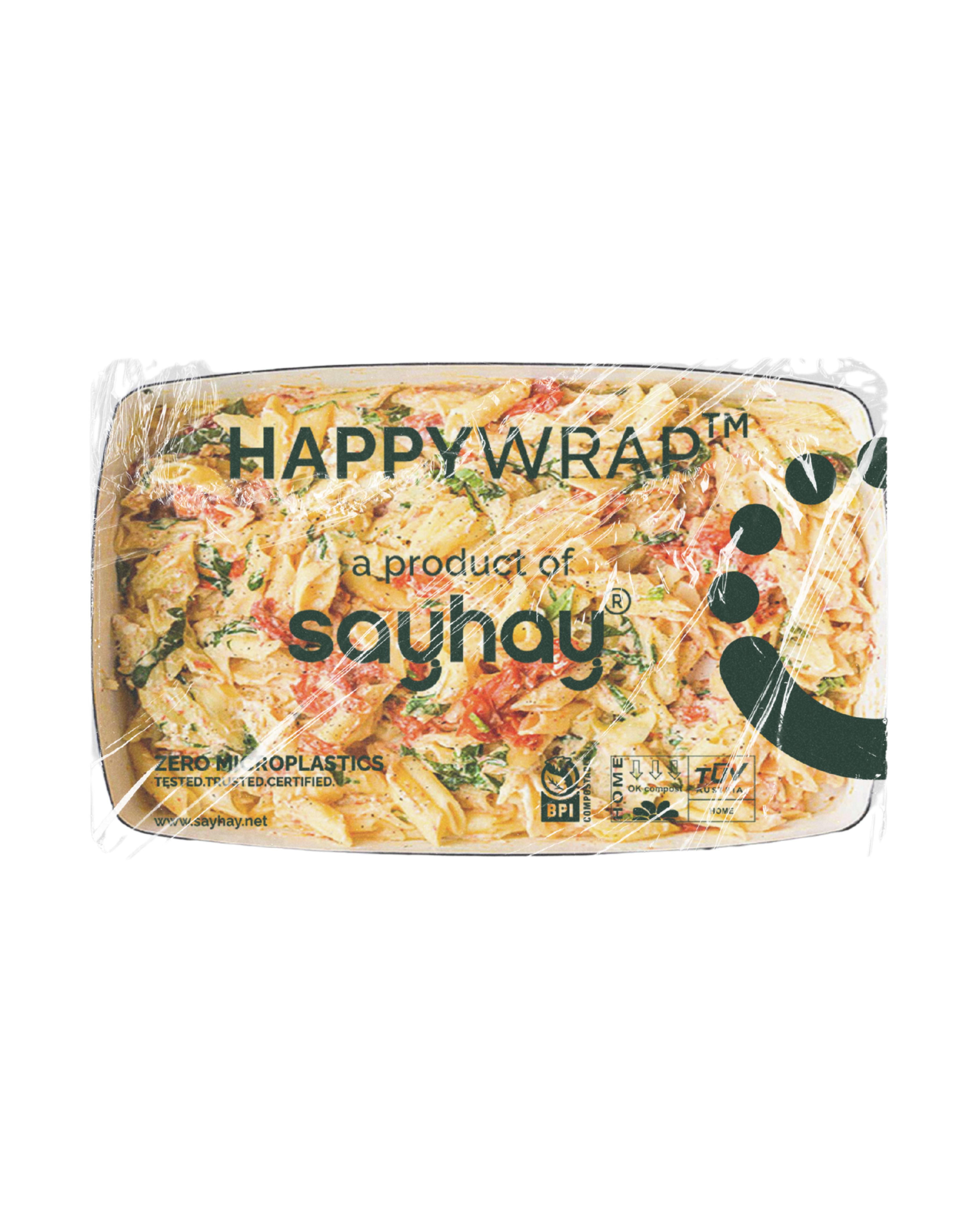 HAPPYWRAP™ keeps food fresh while staying kind to the planet. It is made from plant based, home compostable materials that break down naturally without leaving microplastics behind. Strong, flexible, and transparent, it delivers the performance kitchens expect with the sustainability today's world demands.